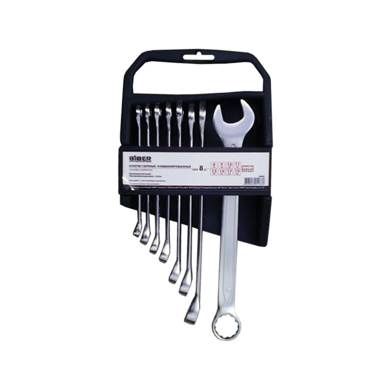 Описание и особенности: Набор ключей комбинированных станет отличным помощником в работе любого мастера. Это качественное сочетание двух наиболее распространенных видов ключей — гаечного и рожкового. Обе головки имеют одинаковый размер — 8 — 19 мм. Ключ изготавливается из хромванадивой стали, что обеспечивает высокие эксплуатационные характеристики. Хромированое покрытие надежно защищает инструмент от коррозии.
