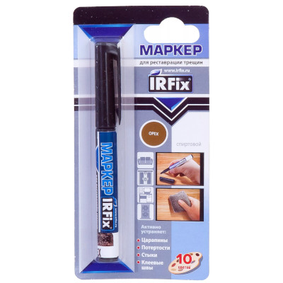 Маркер IRFix предназначен для устранения поверхностных дефектов на различных деревянных, пластиковых и кожаных поверхностях, подверженных интенсивной эксплуатации. Применяется для имитации рисунка текстуры на восстановленном участке, а также для затемнения края повреждения.